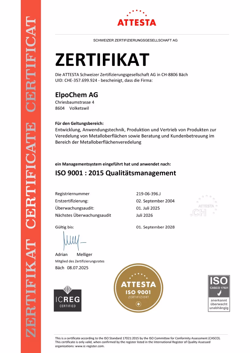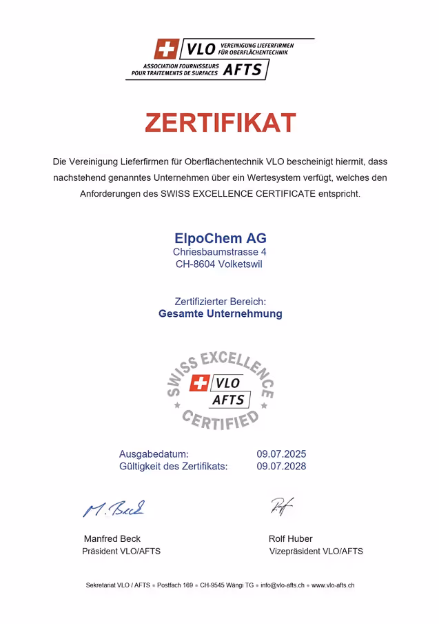 Seit über 50 Jahren entwickelt ElpoChem chemische und elektrochemische Verfahren für industrielle Anwendungen – mit eigener Produktion, technischem Know-how und Fokus auf reproduzierbare Ergebnisse in Ihrer Fertigung.