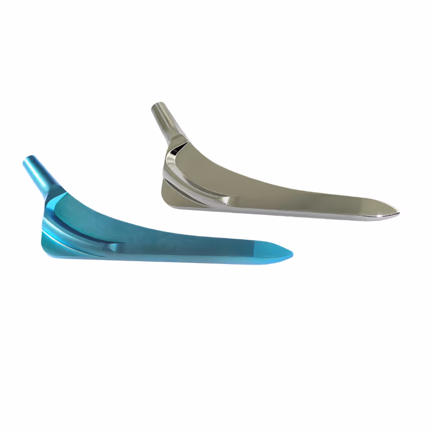 Hüftgelenk-Schaft Titan:elektropoliert (oben)farb-anodisiert (unten)